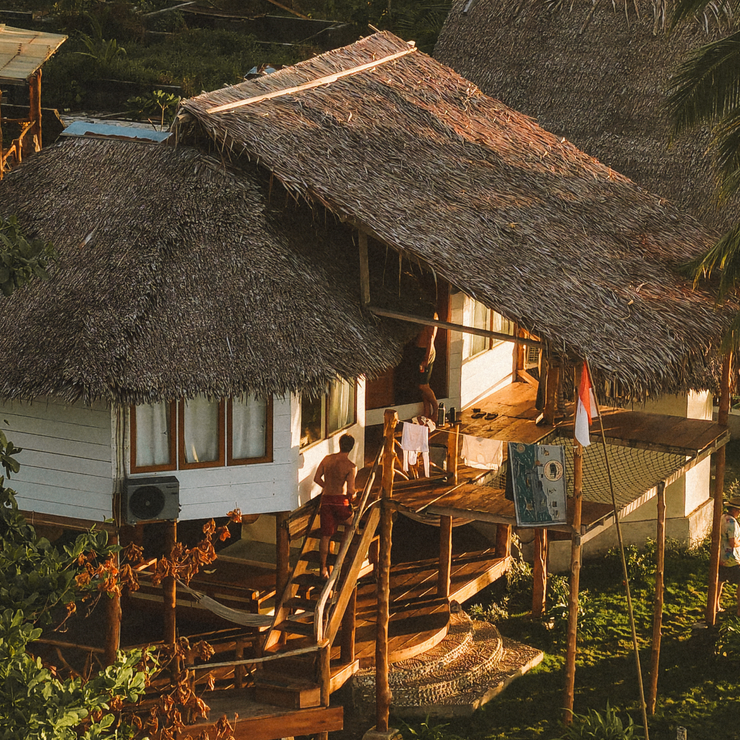 Our beachfront surf resort blends Western comfort with traditional Mentawai craftsmanship and uninterrupted sea views.